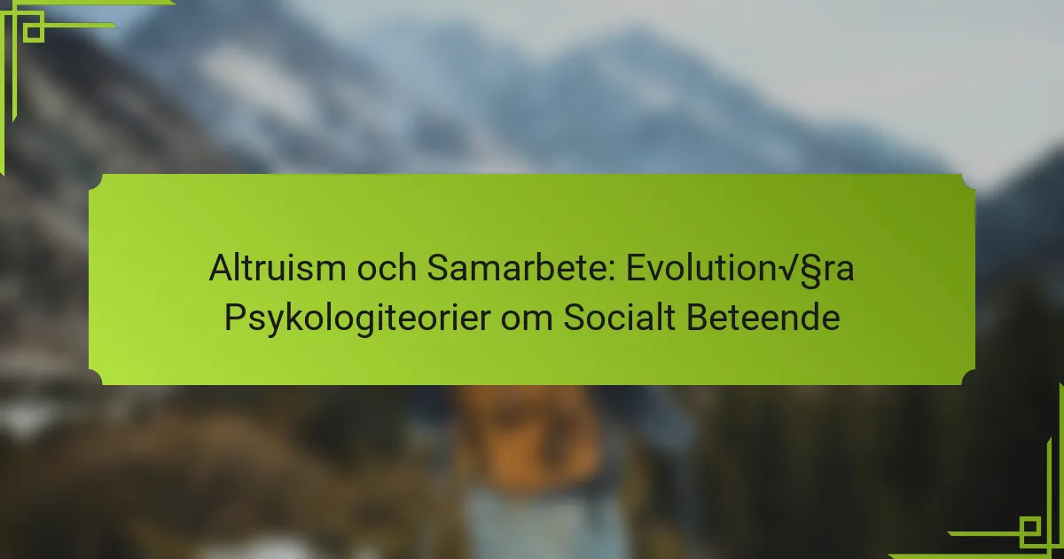 Altruism påverkar socialt beteende på ett betydande sätt, vilket förbättrar samarbetet och förtroendet inom samhällen. Denna artikel utforskar teorier inom evolutionär psykologi om altruism, dess unika egenskaper och hur den främjar social sammanhållning. Den undersöker empatis roll, kulturella influenser och effekten av altruistiska handlingar på gruppdynamik. Att förstå dessa begrepp kan förbättra relationer och främja samarbetsinriktad problemlösning i samhället.