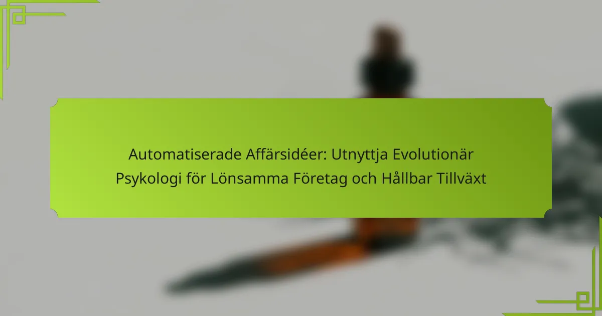 Automatiserade affärsidéer kan avsevärt öka lönsamheten och säkerställa hållbar tillväxt genom att utnyttja insikter från evolutionär psykologi. Att förstå mänskligt beteende förbättrar automatiserade marknadsföringsstrategier, förbättrar användarupplevelsen och främjar varumärkeslojalitet. Nyckelprinciper som socialt bevis, knapphet och kognitiva fördomar kan driva kundengagemang och beslutsfattande. Entreprenörer kan implementera dessa strategier för att skapa skräddarsydda upplevelser som resonerar med deras målgrupp.