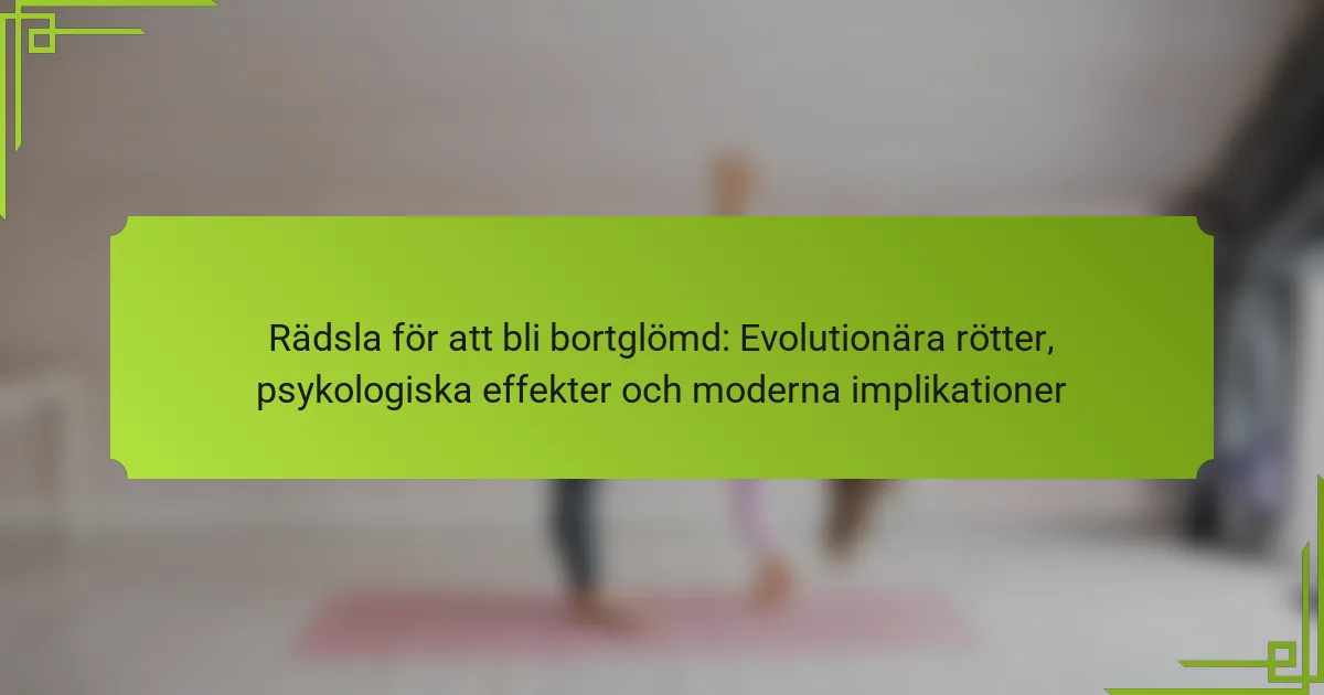Rädslan för att bli glömd kan ha en betydande inverkan på mental hälsa och socialt beteende. Denna artikel utforskar dess evolutionära rötter, psykologiska effekter och moderna implikationer. Den undersöker hur social isolering och digital identitet formar denna rädsla, tillsammans med dess koppling till existentiell ångest. Att förstå dessa aspekter kan leda till personlig tillväxt och djupare relationer med andra.