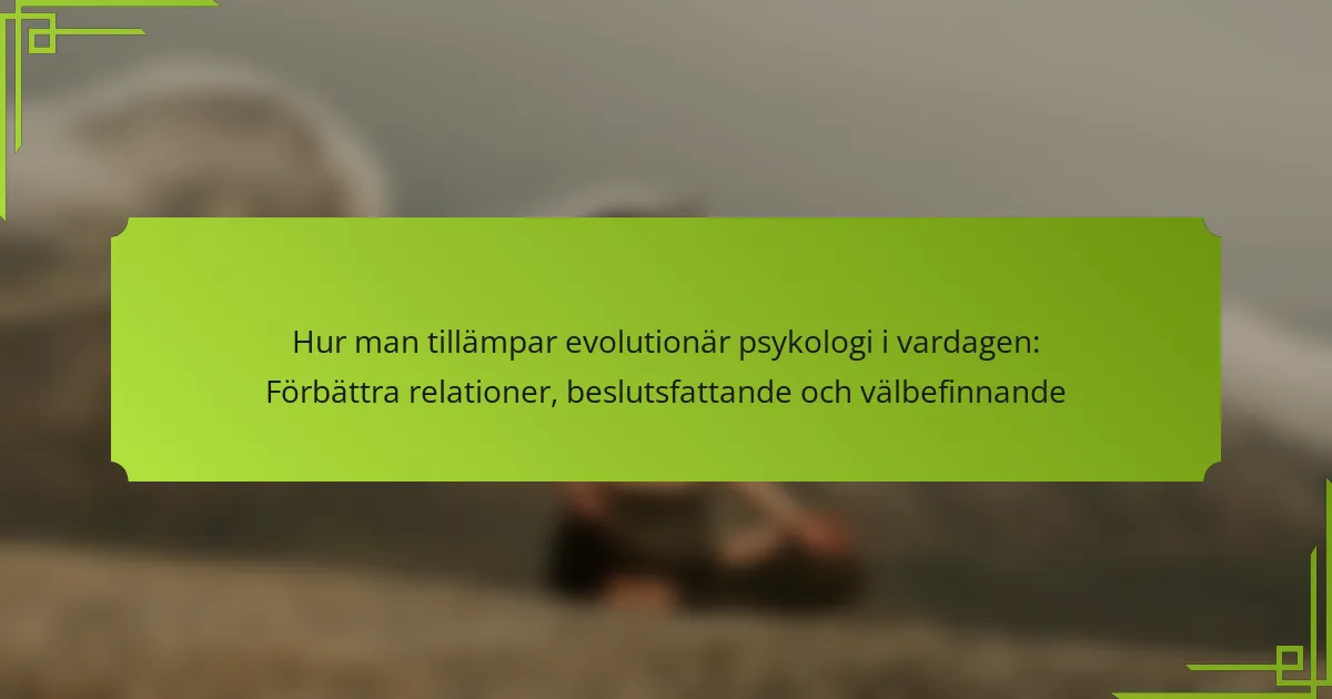 Evolutionär psykologi påverkar avsevärt beslutsfattande genom att belysa medfödda beteendemönster som formas av förfäders överlevnadsbehov. Att förstå dessa tendenser kan förbättra personliga relationer och öka välbefinnandet. Till exempel kan erkännande av sociala hierarkiers påverkan vägleda individer i att navigera arbetsplatsdynamik effektivt. Dessutom kan medvetenhet om kognitiva snedvridningar som har sina rötter i evolutionära anpassningar leda till mer rationella val i det dagliga livet. Att integrera dessa insikter främjar bättre beslutsfattande, vilket i slutändan ökar den övergripande livstillfredsställelsen.