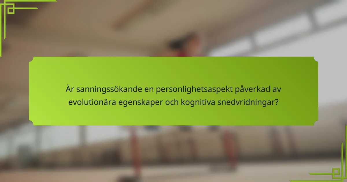 Evolutionära egenskaper påverkar betydligt sanningssökande beteende genom att forma kognitiva bias och personlighetsaspekter. Dessa egenskaper har utvecklats för att förbättra överlevnad, vilket får individer att söka exakt information för beslutsfattande. Till exempel kan en benägenhet för socialt samarbete leda till en större betoning på gruppkonsensus, vilket påverkar hur sanning uppfattas. Kognitiva bias, såsom bekräftelsebias, komplicerar detta ytterligare, eftersom individer kan föredra information som stämmer överens med deras befintliga övertygelser. Att förstå dessa dynamiker avslöjar komplexiteten i sanningssökande som både ett evolutionärt och psykologiskt fenomen.