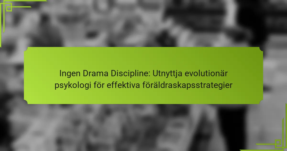Evolutionär psykologi ger insikter som förbättrar No Drama Discipline genom att betona förståelsen av barns beteende. Denna metod fokuserar på barns medfödda utvecklingsbehov, vilket främjar empati och koppling. Att förstå att barn är programmerade för anknytning hjälper föräldrar att svara effektivt på känslomässiga utbrott. Till exempel, istället för att reagera med frustration, kan föräldrar delta i lugna diskussioner som främjar emotionell reglering. Denna metod stämmer överens med den grundläggande egenskapen hos vårdande relationer, vilket i slutändan leder till mer effektiva föräldraskapsstrategier. Betoningen på evolutionära principer stöder en helhetssyn på barnutveckling, vilket gör No Drama Discipline till en värdefull ram för modernt föräldraskap.